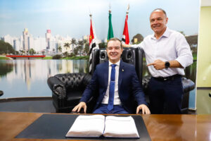 Em cerimônia realizada nesta terça-feira (23), no oitavo andar do Paço Municipal de São José do Rio Preto, foi formalizada a transmissão temporária do comando do Executivo municipal. O prefeito Coronel Fábio Candido (PL) e o presidente da Câmara, Luciano Julião (PL), assinaram o termo que autoriza o chefe do Legislativo a assumir interinamente a Prefeitura. O clima foi de descontração.