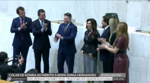 A Assembleia Legislativa do Estado de São Paulo (Alesp) realizou, em sessão solene nesta segunda-feira, 2, a entrega do Colar de Honra ao Mérito Legislativo à bispa Sonia Hernandes, uma das principais lideranças evangélicas do país. A honraria foi concedida por iniciativa do deputado estadual Danilo Campetti (Republicanos), que destacou a trajetória da homenageada como exemplo de fé, liderança e impacto social. A cerimônia reuniu autoridades civis, religiosas e parlamentares, além de fiéis e admiradores do trabalho da bispa, cofundadora da Igreja Renascer em Cristo. Em seu discurso, Campetti enfatizou a relevância de Sonia Hernandes não apenas no cenário religioso, mas também por sua atuação em causas sociais, especialmente junto a comunidades em situação de vulnerabilidade. A sessão solene reforça o espaço crescente das bancadas evangélicas nas casas legislativas e a articulação política de Campetti, que vem se consolidando como uma das vozes mais atuantes do Republicanos no Estado. A homenagem à bispa é vista nos bastidores como um gesto estratégico para fortalecer laços com o eleitorado cristão e ampliar sua base de apoio entre as lideranças religiosas de São Paulo.