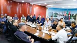 A reunião ocorreu no Gabinete do Prefeito e contou com a presença de representantes da Polícia Militar, Polícia Civil, Polícia Federal, Polícia Rodoviária Federal, Polícia Rodoviária Estadual, Corpo de Bombeiros, Guarda Civil Municipal, além de secretarias municipais envolvidas na organização do evento.