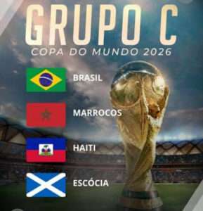 O Brasil está ao lado de Marrocos, Escócia e Haiti no Grupo C da Copa do Mundo de 2026, que será disputada nos Estados Unidos, no México e no Canadá. A chave da seleção brasileira na competição, que será realizada entre 11 de junho e 19 de julho de 2026, foi definida nesta sexta-feira (5) através de sorteio realizado no Kennedy Center, em Washington (Estados Unidos). A estreia do time comandado pelo técnico italiano Carlo Ancelotti será no dia 13 de junho, diante dos marroquinos, ainda em local a ser definido.