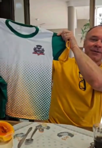 Também veio aqui, olha, novo short, novo modelo de short. Temos aqui o abrigo, a calça aqui de frio, mais um modelinho de short também, estamos averiguando. Olha aqui que legal, esse é o modelo também do agasalho”, afirmou o prefeito.