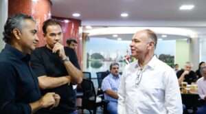 O prefeito de São José do Rio Preto, Coronel Fábio Candido, recebeu na manhã desta quarta-feira (11/03), em seu gabinete, representantes da concessionária Ecovias e engenheiros responsáveis por estudos técnicos de mobilidade urbana na cidade. A reunião teve como objetivo a apresentação de um estudo sobre a implantação e adequação de marginais e dispositivos viários, com foco na melhoria da fluidez e da segurança no trânsito.