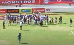 Com o apito final, a festa tomou conta do gramado do Teixeirão. Centenas de torcedores invadiram o campo para comemorar com os jogadores, que ergueram o troféu sob aplausos e cantos da arquibancada.