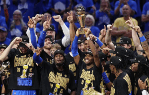 O Oklahoma City Thunder é o novo campeão da NBA. A equipe venceu o Indiana Pacers por 103 a 91, no jogo 7 da série final da temporada 2024/2025, e garantiu o segundo título de sua história. A conquista coroa uma campanha consistente, liderada por Shai Gilgeous-Alexander, eleito o melhor jogador das finais.