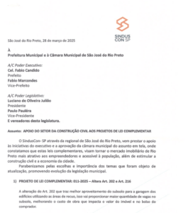 O setor da construção civil de Rio Preto tem demonstrado apoio sólido às iniciativas da Prefeitura de Rio Preto, que vinham sendo lideradas pelo vice-prefeito Fábio Marcondes, com o intuito de modernizar a legislação municipal e tornar o mercado imobiliário mais dinâmico e acessível. Em um comunicado oficial, o Sinduscon-SP, através da sua regional, manifestou total respaldo aos Projetos de Lei Complementar que visam facilitar o desenvolvimento urbano, além de fortalecer a economia local.