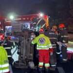 Um acidente de trânsito com tombamento mobilizou equipes do Corpo de Bombeiros, da Polícia Militar e de resgate na madrugada