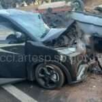 Um Vectra estava sentido Poloni a Monte Aprazível quando foi atingido por um caminhão em que o motorista teria perdido