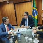 O prefeito de São Paulo, Ricardo Nunes, recebeu uma comitiva do MDB para debater projetos de infraestrutura para São Paulo e todo o Estado. O deputado estadual Itamar Borges participou do encontro que teve a participação ainda do ministro das Cidades, Jader Filho, os deputados federais Simone Marquetto e Delegado Palumbo, o secretário municipal de Relações Institucionais, Enrico Misassi, e o presidente da Cohab, João Cury.