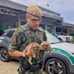 VEJA VÍDEO – Dois filhotes de onça são resgatados pela Polícia Ambiental em Monte Aprazível