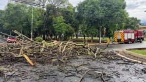 Um temporal com ventos intensos atingiu São José do Rio Preto na tarde deste sábado (18), provocando queda de árvores e interrupções no trânsito em alguns pontos da cidade. Na avenida Murchid Homsi, uma das principais vias da zona sul, uma árvore tombou sobre a pista, bloqueando totalmente o tráfego em um dos sentidos. Não houve feridos. Equipes da Prefeitura foram acionadas para remover os galhos e liberar a via.