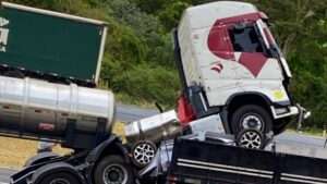 Um dos caminhões envolvidos transportava ácido sulfúrico, substância altamente perigosa. Até o momento, não há registro de vazamento, mas as equipes permanecem em alerta para evitar riscos ambientais e à saúde pública.